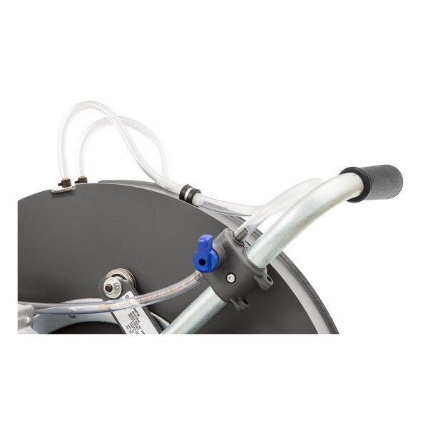 - Cutting height is controlled through a convenient crank control or foot pedal