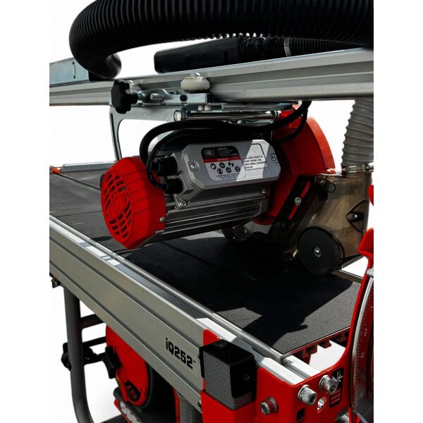 The iQ252 from iQ Power Tools is a 10" dry-cut rail saw built for serious tile professionals who want to cut faster, cleaner, and safer—without the hassle of water. With a powerful integrated vacuum system, advanced dust filtration, and the capacity to make large, precision cuts, the iQ252 is engineered to boost productivity on every jobsite. Whether you're working indoors or outdoors, this saw delivers high-performance results while keeping your workspace clean and compliant with OSHA standards.